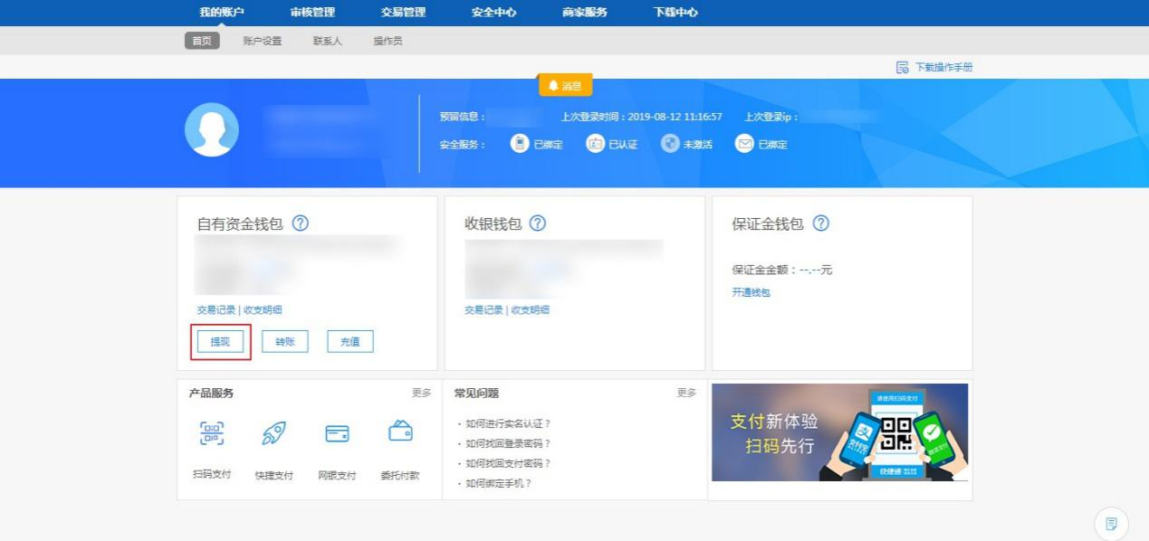 1)请您登录单位版快捷通账户(https://ent.kjtpay.com/)。
